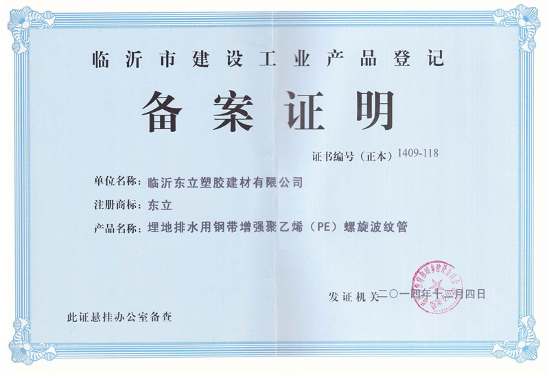 建設工業產品備案登記證